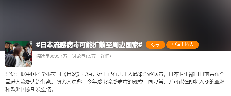 近日,中国疾控中心发布的流感监测周报显示,全国流感样病例暴发疫情数较前几周增加数倍,流感病例呈上升趋势,且流行毒株也较去年有所不同。专家预测,受多重因素影响,今年国内的流感流行季可能会提前到来。