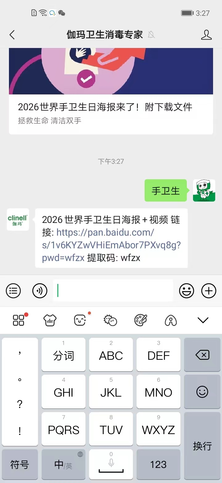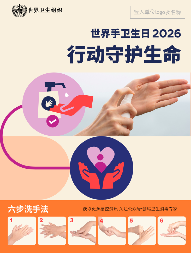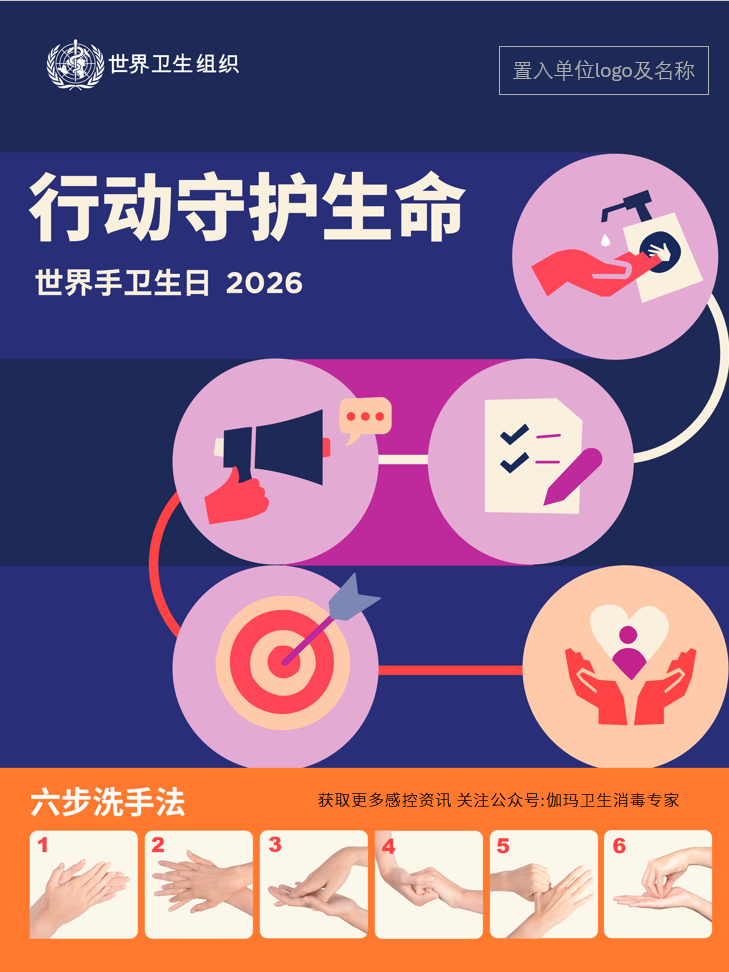 2026年世界手卫生日宣传海报已正式发布。我们已为各位老师整理并打包了全套手卫生宣传资料。如需获取无水印高清原图及视频,请关注“伽玛卫生消毒专家”公众号,并在后台回复关键词“手卫生”,即可免费获取,助力您更高效地开展手卫生宣教与推广工作。